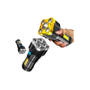 Introducing you to the very new High Power LED Flashlight by OneaimFit. Your perfect camping partner. You can use it in the dark anywhere you want, i.e.: camping, tours, hiking, home, etc. It's a multipurpose gadget that can be used in many ways. It's a high power 4 core rechargeable flashlight, it has a lighting distance of about 100 meters & battery life of about 2-4 hours, and the rechargeable lithium battery is charged through a USB cable. The light is highly portable as it is light weighted & small and the easy comfortable grip makes it very easy to carry, The high quality raw material extends its lifetime and makes it more durable. Experience superior illumination with the High Power LED Flashlights from OneAimFit. Whether you're exploring, camping, or seeking emergency preparedness, this versatile tool is your beacon of light in any situation.
