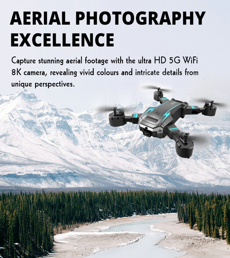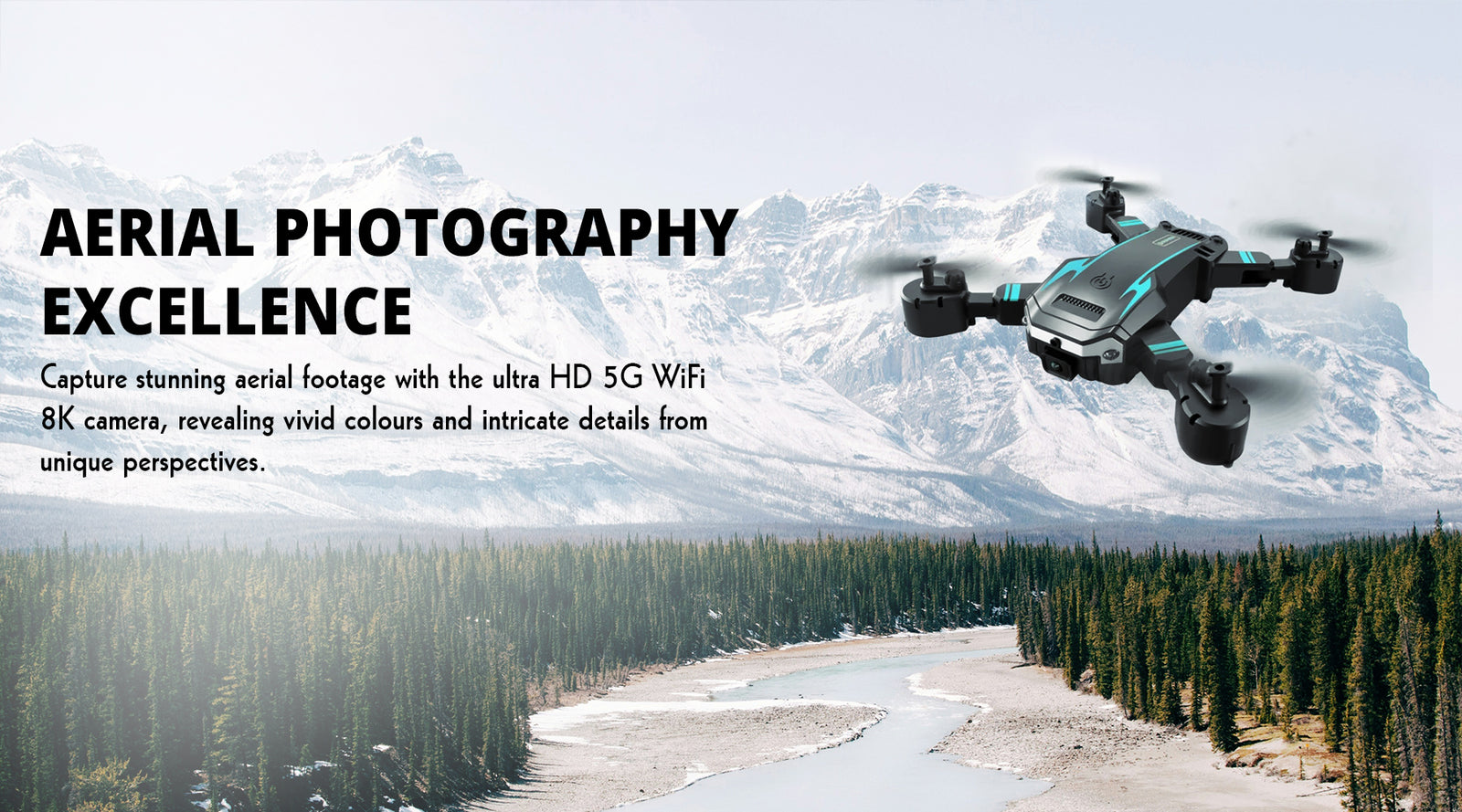 Introducing the Drone 8K 5G Aerial Photography Helicopter by OneaimFit. It is an advanced aerial photography device designed for capturing stunning high-resolution images and videos from the sky. This drone's 8K camera capabilities deliver exceptional clarity and detail in every shot, making it ideal for professional photographers and videographers. Its advanced 5G connectivity ensures stable reliable transmission of live footage and also allows real-time streaming and control from a 5000m distance. This drone offers a seamless and safe flight experience with its precision flight controls and intelligent features like GPS positioning. It offers superior control and responsive movements with Its 6-axis gyro-brushed coreless motor. So if you are looking for a drone which captures high-quality aerial footage and images.