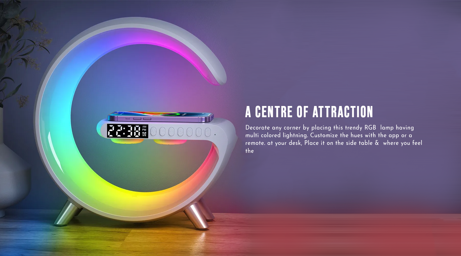 Running out of power? We got you! Power your compatible devices quickly with its 15W fast wireless charging capability while basking in its eye-catching glowy display. Adjust the features your way, The volume, color, and brightness of the lights and the sound through the app to match your vibe. This smart night light is fully operated with a remote. You can even adjust the brightness and select your desired color. It is user-friendly when it comes to software, voice commands, remote control, or a button click. Control it at your fingertips.