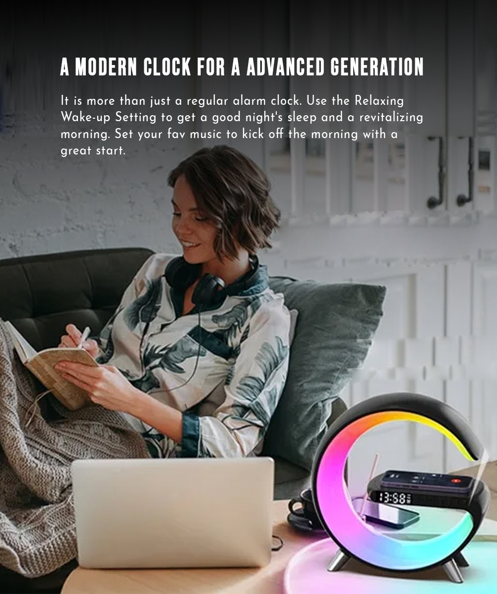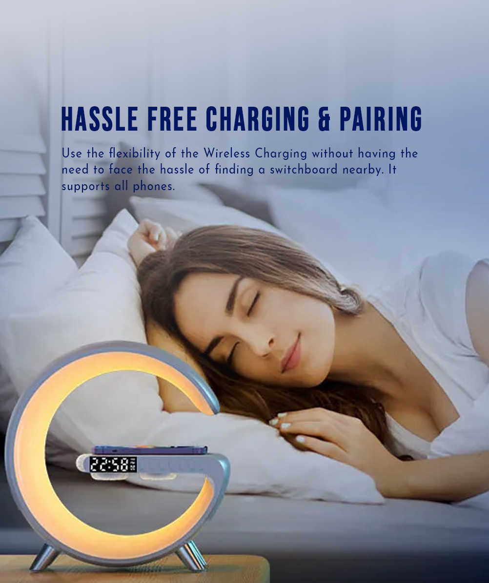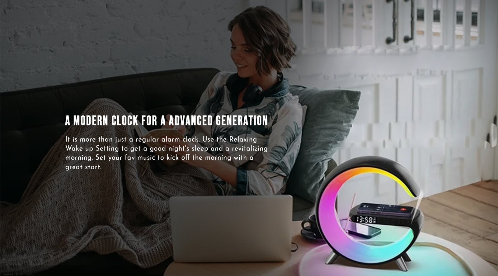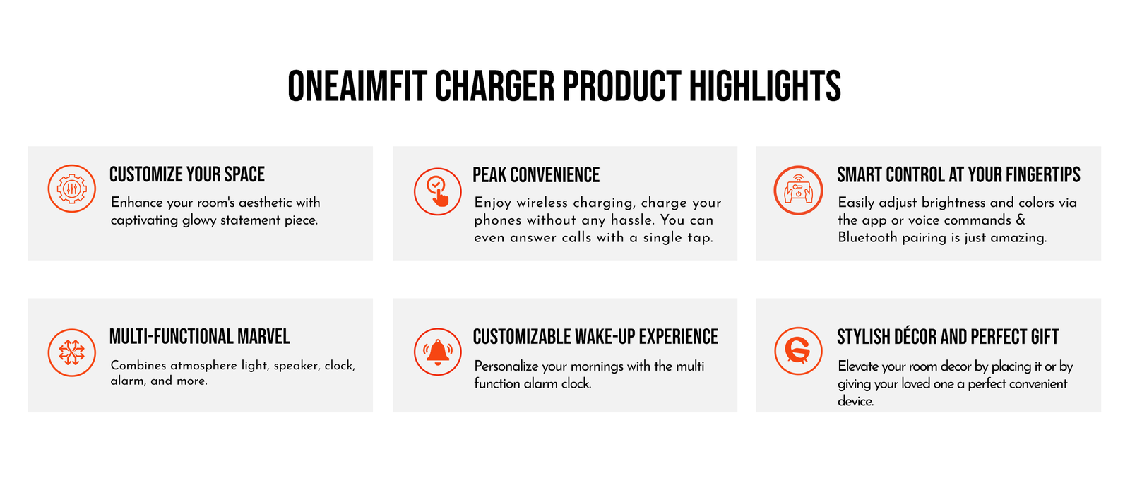 OneAimFit introduces their trendy Wireless Charging Glow Lamp. This sleek lamp is a timeless device that has all the functions one could desire for. This modern clock is a must-have.